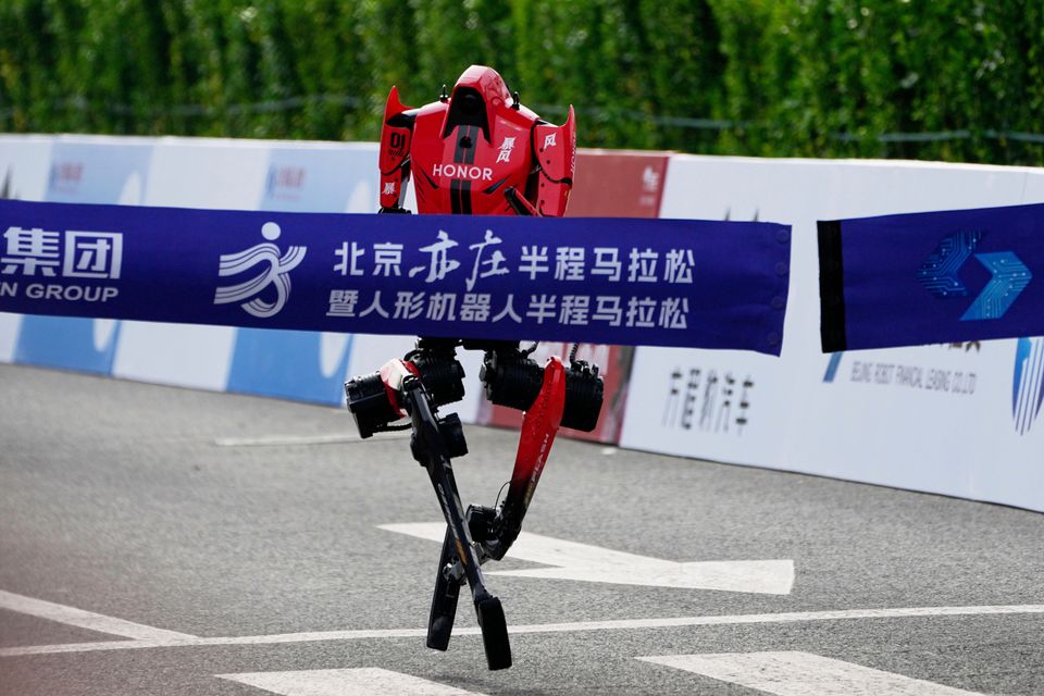 Beim Halbmarathon in Peking haben humanoide Roboter ihre menschliche Konkurrenz klar abgehängt. Der siegreiche Roboter der chinesischen Smartphone-Marke Honor legte die 21 Kilometer lange Strecke am Sonntag in 50 Minuten und 26 Sekunden zurück. Damit unterbot er den menschlichen Halbmarathon-Weltrekord,den der ugandische Läufer Jacob Kiplimo im März in Lissabon aufgestellt hatte,gleich um mehrere Minuten.