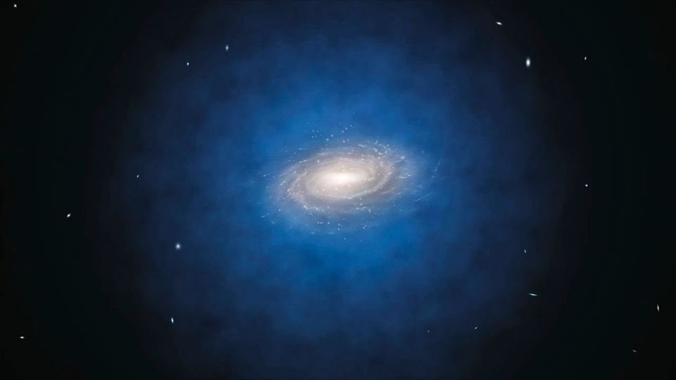 Illustration der Milchstraße mit blau eingefärbtem Halo: Überschuss an Gammastrahlung