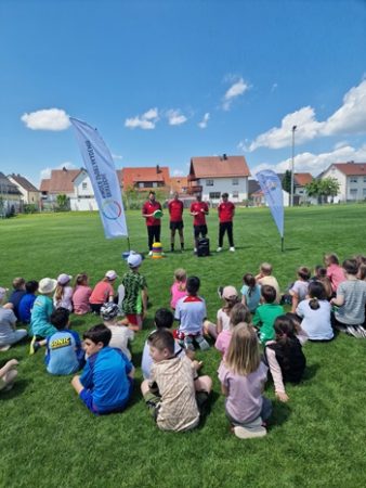 Organisiert von der Deutschen KinderSportAkademie aus Ludwigsburg galt es im Haldenberg-Stadion beziehungsweise dem Sportplatz in Sparwiesen viele pfiffige Bewegungsangebote wie Hindernisläufe,Weitspringen oder auch Stacking anzubieten. Das Stacking ist ein Geschicklichkeitsspiel,bei dem es gilt,Plastikbecher nach speziellen Vorgaben möglichst schnell zu stapeln.