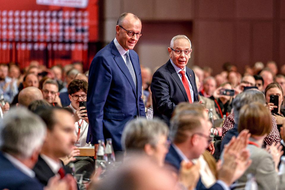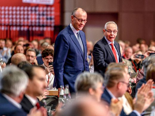 Kanzler Merz,Gewerkschafter Vassiliadis beim IGBCE-Kongress in Hannover: »Die sind doch nicht blöd«