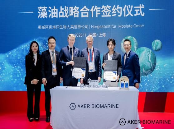 Schanghai/Baden-Baden – Auf der 8. China International Import Expo (CIIE) in Schanghai hat die deutsche Premium-Gesundheitsmarke MOSLATE eine weitreichende strategische Kooperation mit dem norwegischen Biotech-Unternehmen Aker BioMarine bekannt gegeben. Im Rahmen einer feierlichen Unterzeichnungszeremonie stellten beide Unternehmen zudem eine neue Generation von hochdosierten Algenöl-DHA-Präparaten vor, die deutsche Pharma-Qualität mit nachhaltiger norwegischer Rohstofftechnologie verbinden.
