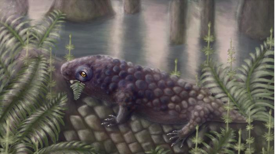 Forschende haben den versteinerten Schädel eines Mikrosauriers aus dem Karbon-Zeitalter analysiert und dabei eine erstaunliche Entdeckung gemacht: Die Kreatur konnte offenbar Pflanzen kauen.